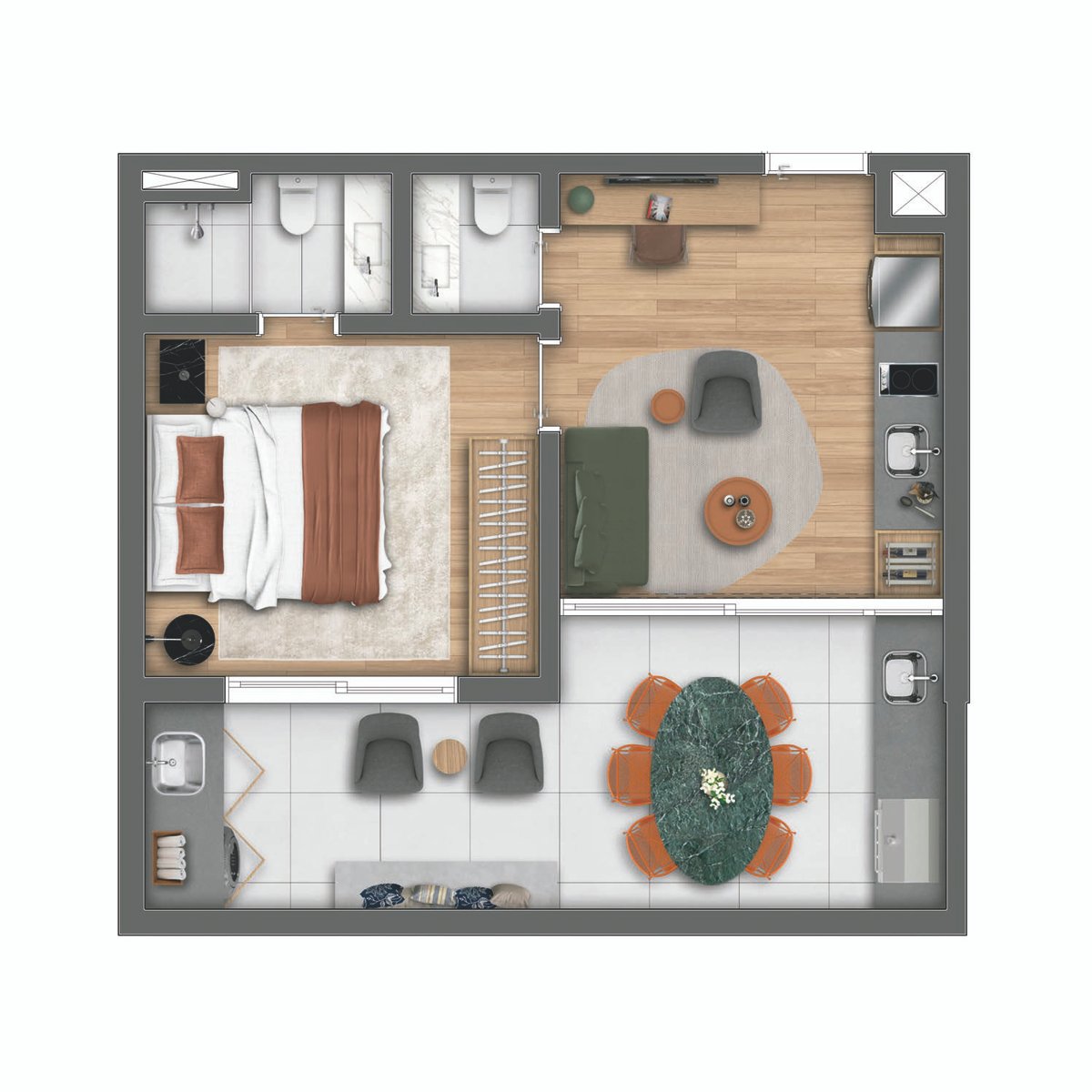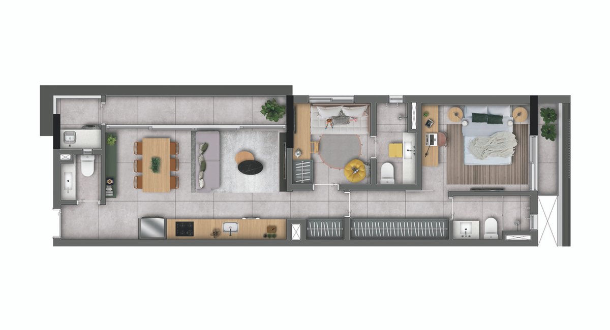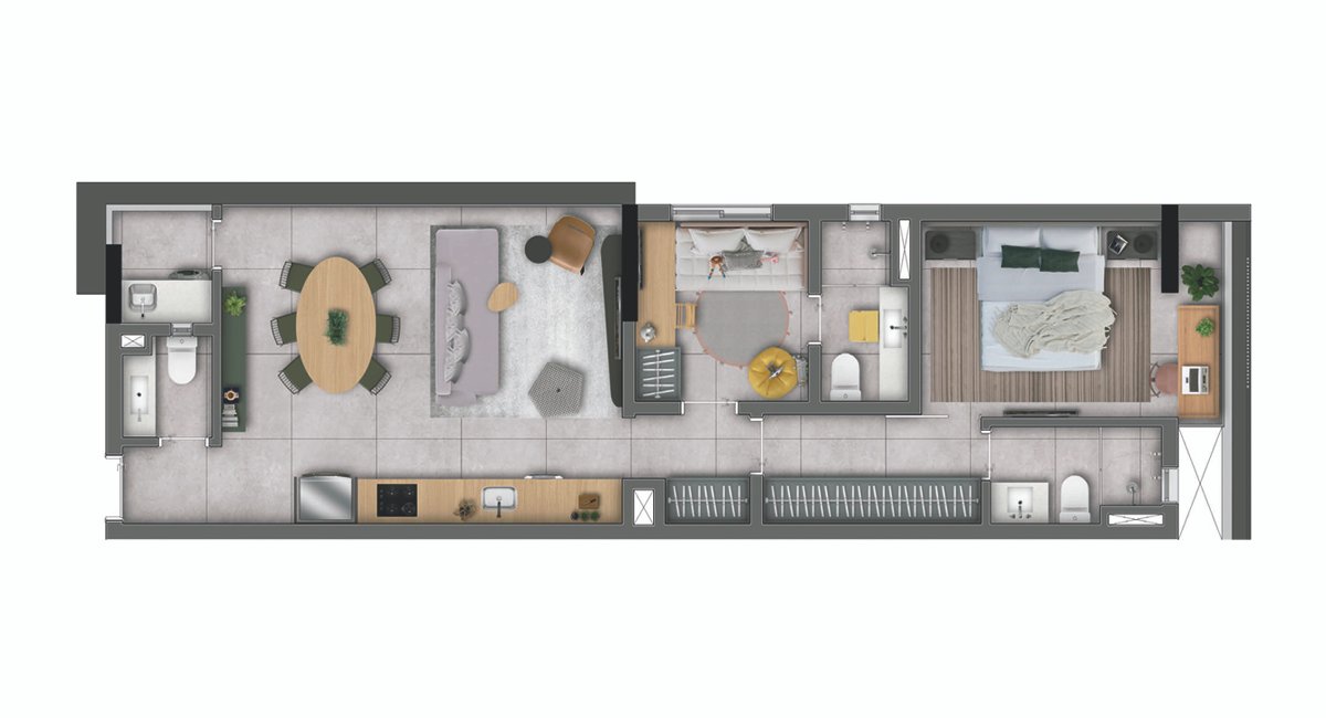 Apartamentos de 1 e 2 dormitórios, em plantas de 48m² à 68m².
