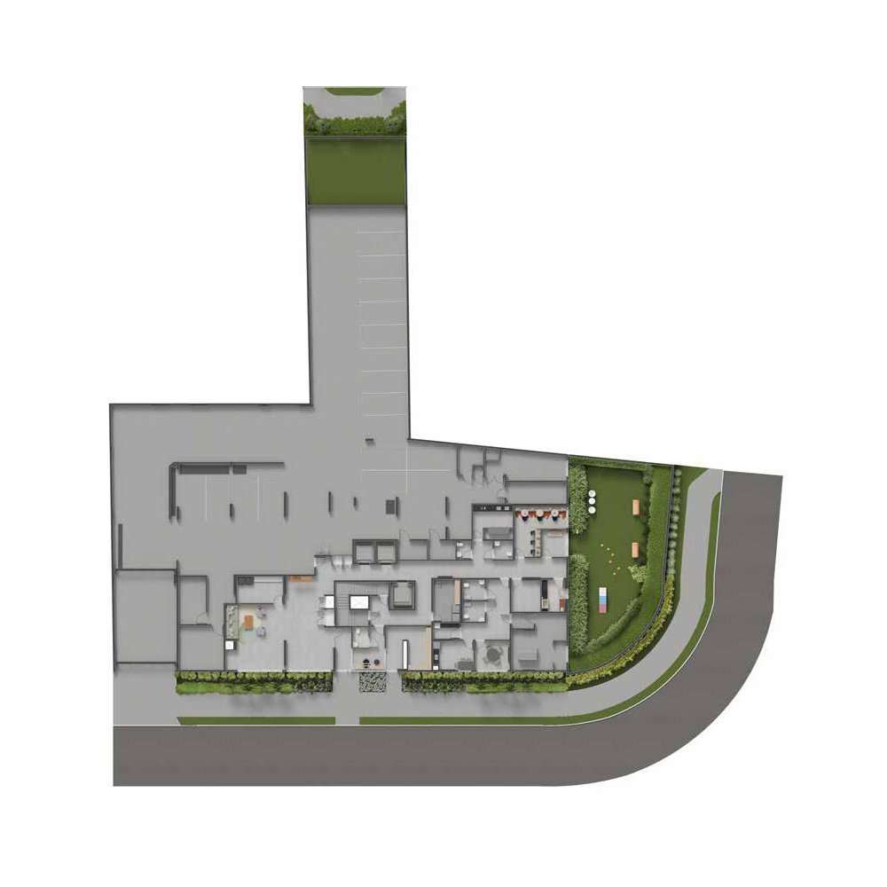 Apartamentos de 1 a 3 dormitórios com plantas que variam de 33m² à 74m² e até 2 vagas de garagem demarcadas.