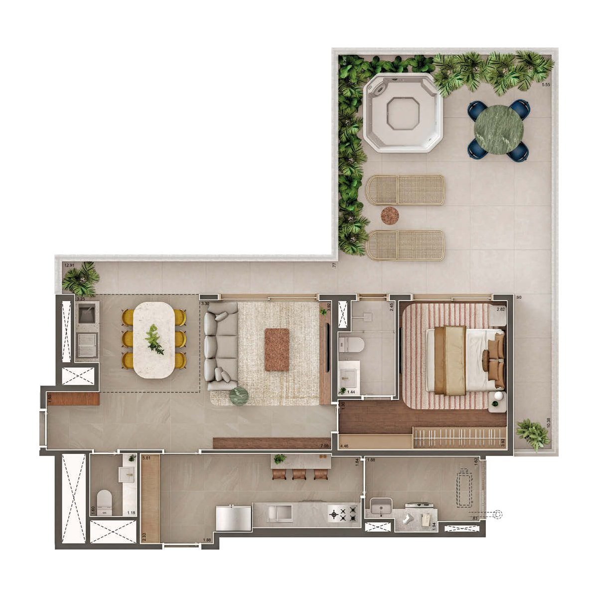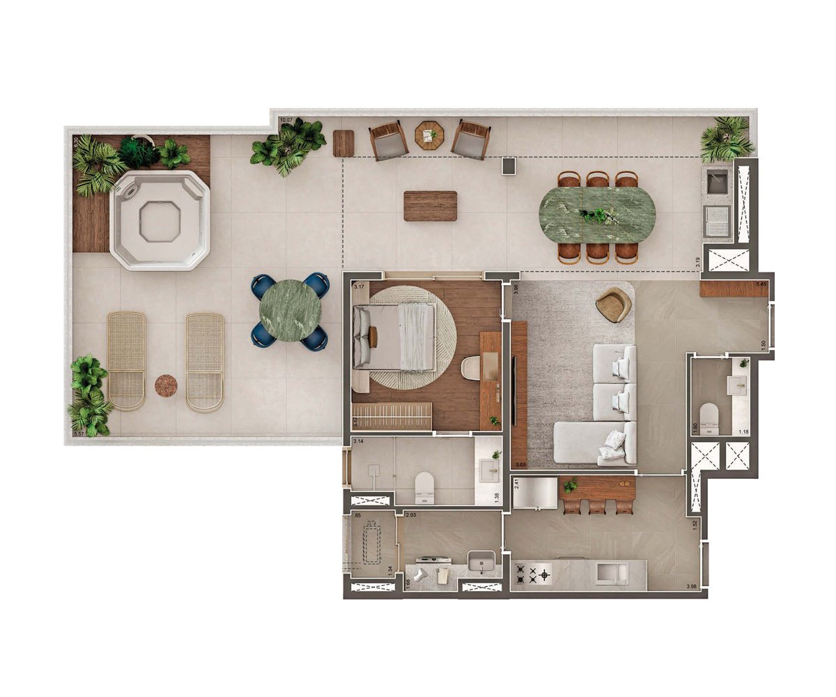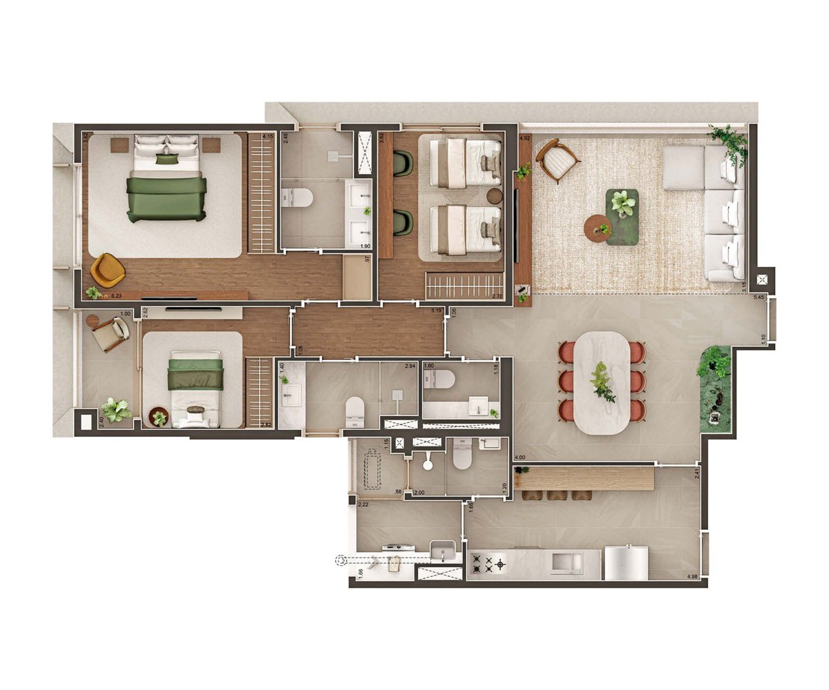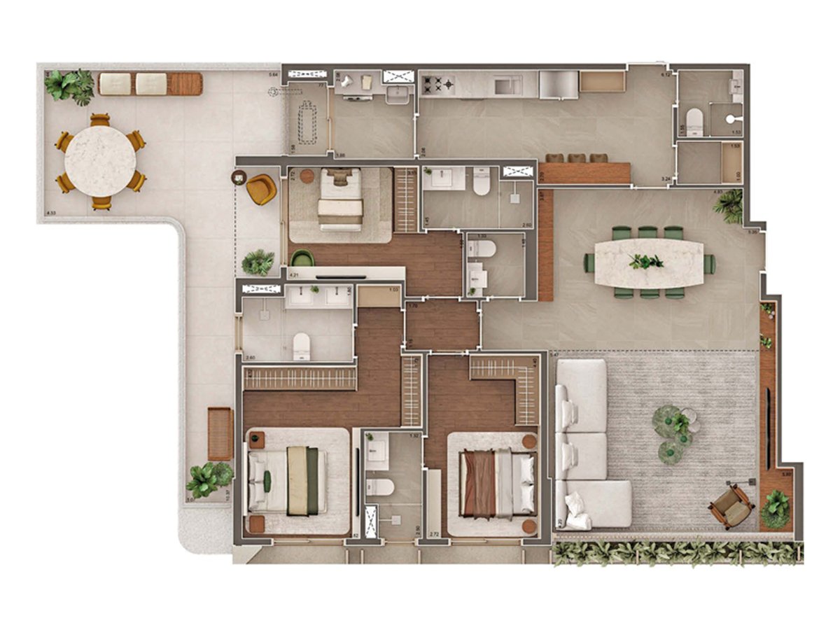 Apartamentos de 124m² e 150m² com 3 dormitórios ou 3 suítes.
