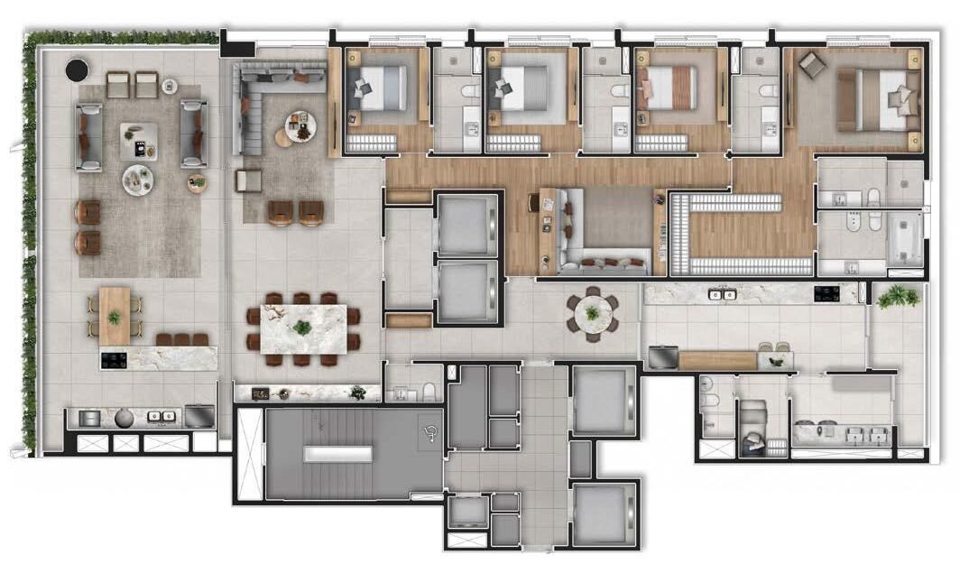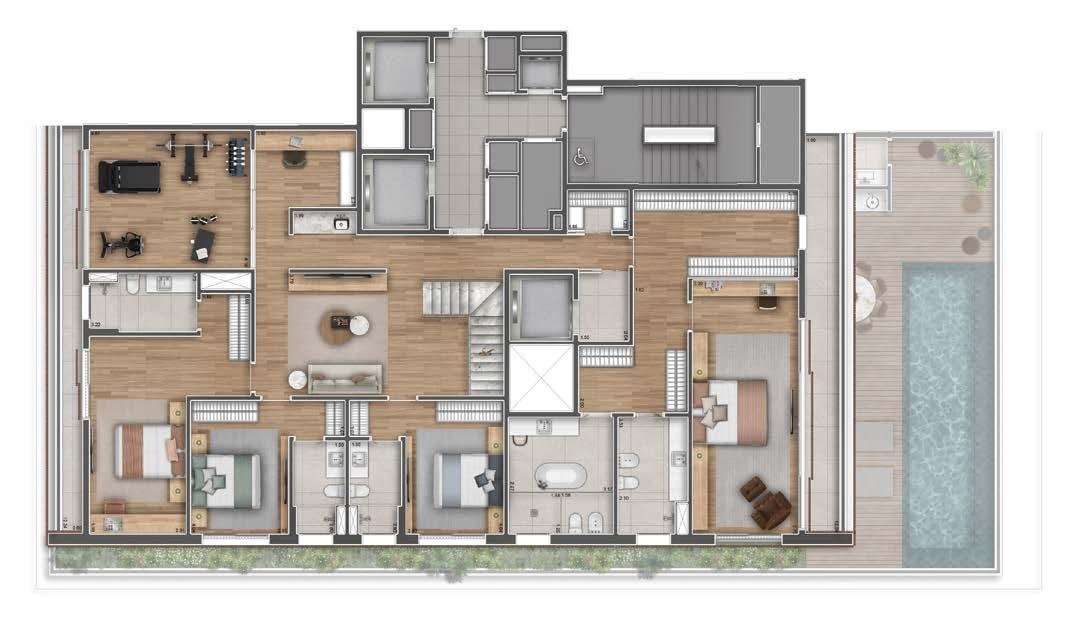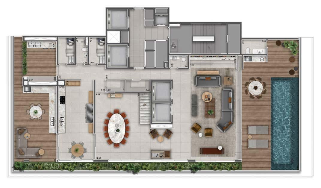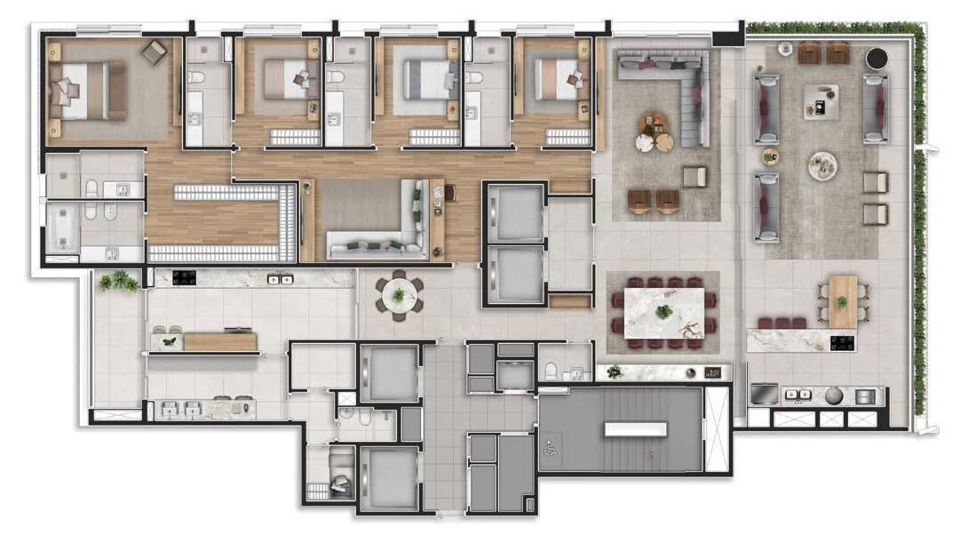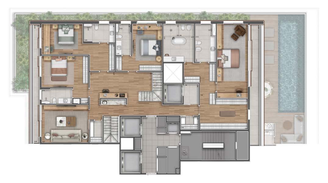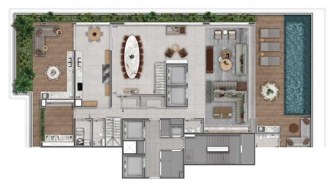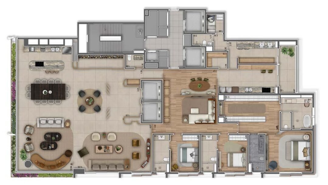 - 636m² – Duplex de 618,70m² + 17,60m² de office exclusivo + 6 vagas