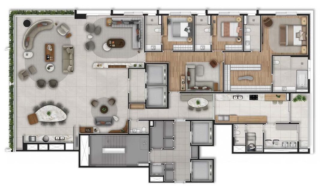 - 655m² – Duplex de 637,20m² + 17,60m² de office exclusivo + 6 vagas