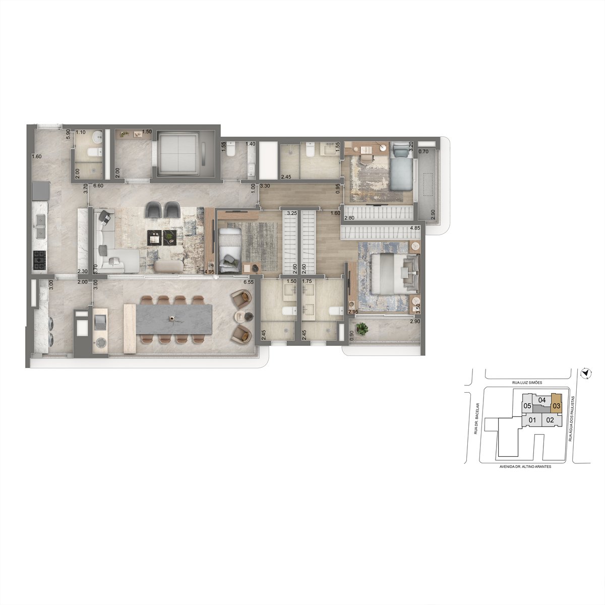 - 179m² – 3 suítes ou 4 dormitórios