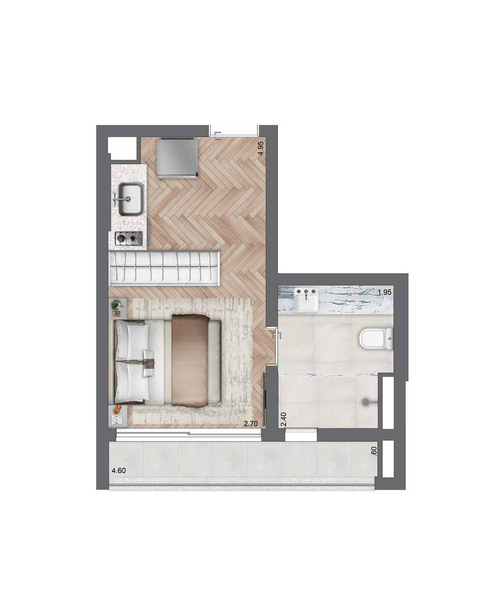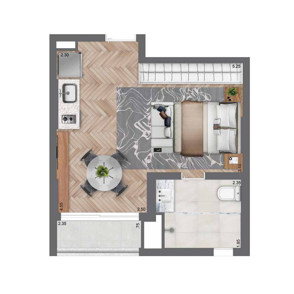 Disponibilidade de studio para investimento com alto potencial de rentabilização.