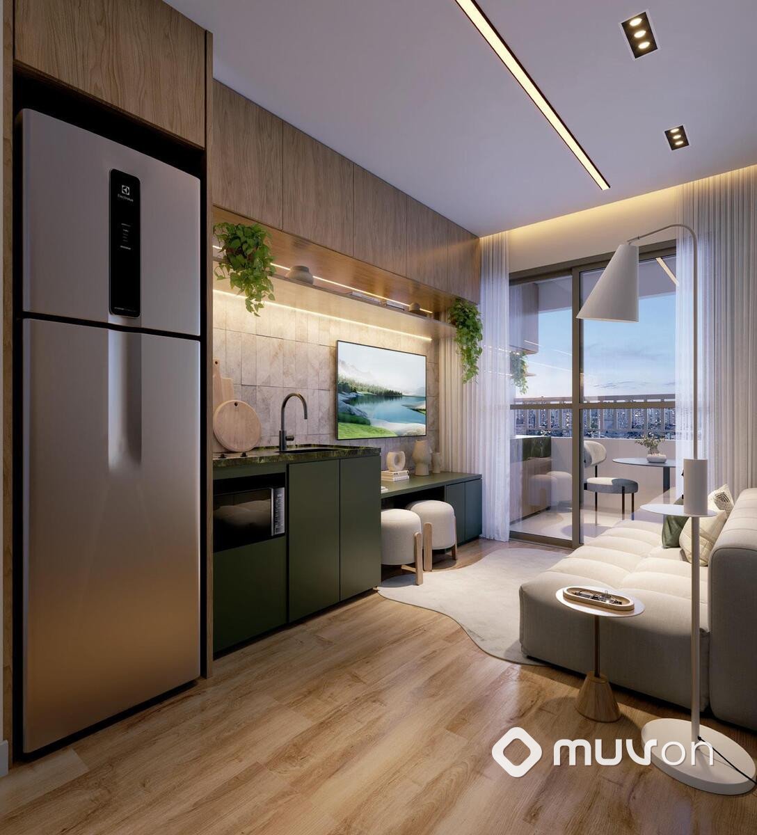 Apartamentos de 1 suíte em plantas de 30m² e 33m², todas com varanda e infraestrutura para ar-condicionado.
